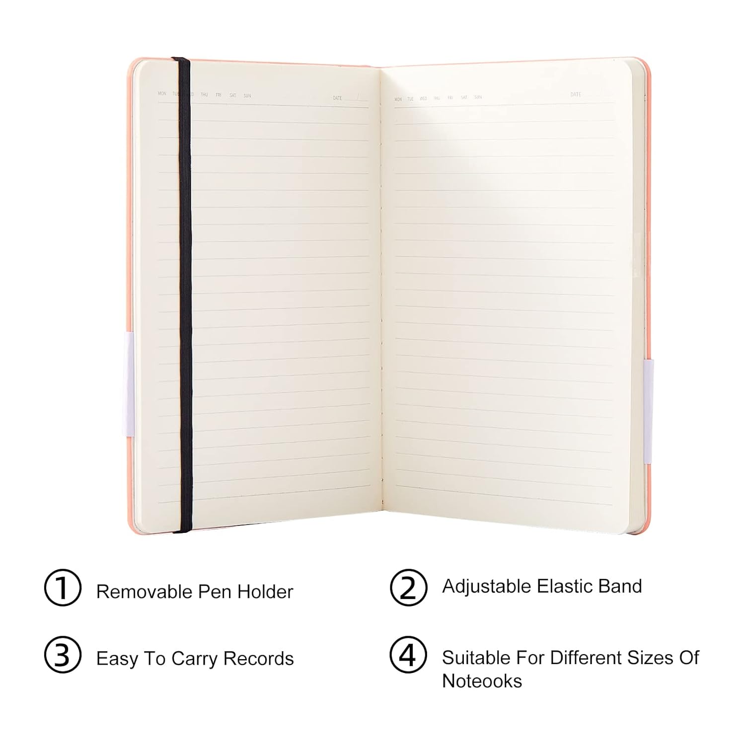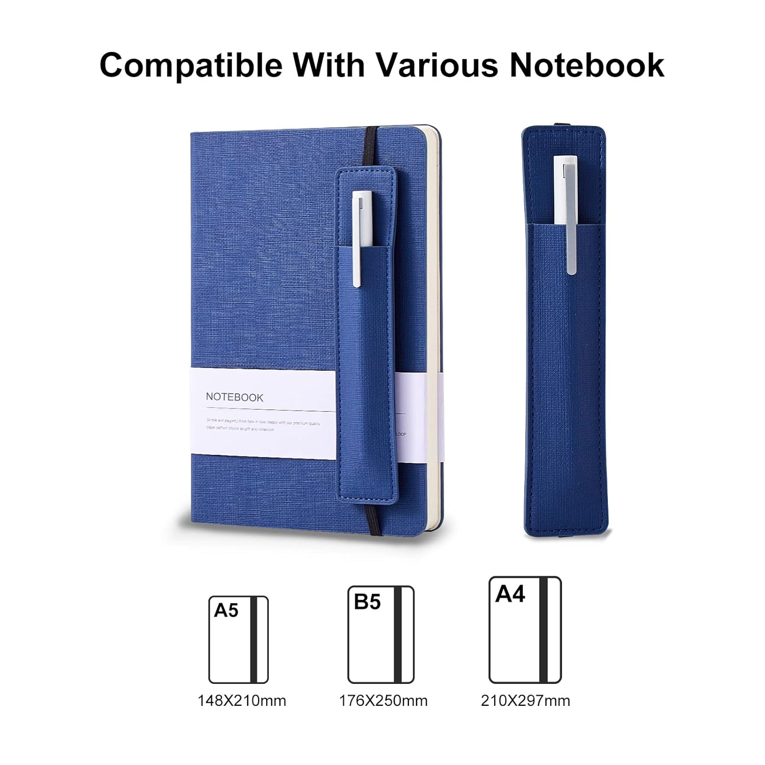 Notebook, A5 Journal Notebook with Pen Holder, College Ruled Notebook with Adjustable Elastic Pen Holder, Leather N