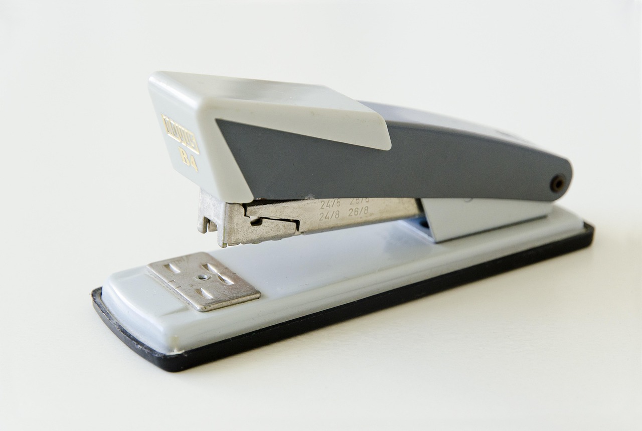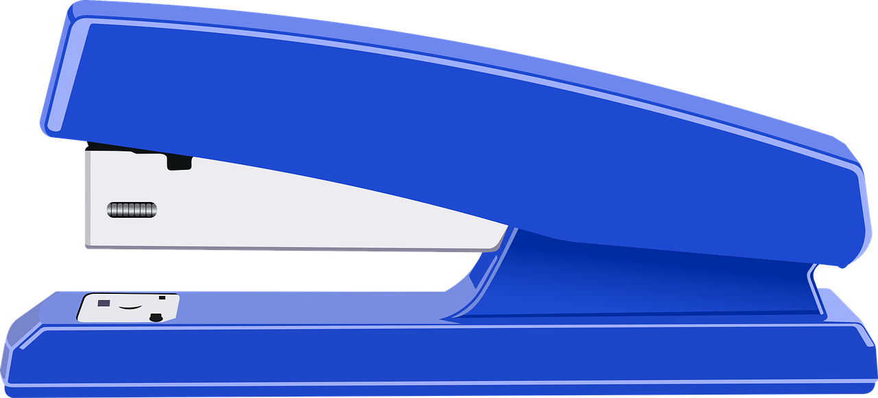 Most staplers are manual: you place the papers inside, press the top part down — the stapler’s mechanism pushes a staple through the papers and clinches (bends) its legs against an “anvil.” Wikipedia+1